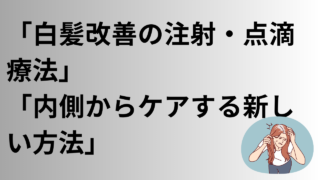 白髪改善の注射・点滴療法について解説。ビタミンやミネラル、アミノ酸を体内に補う仕組みや、メリット・注意点・おすすめの人を紹介します